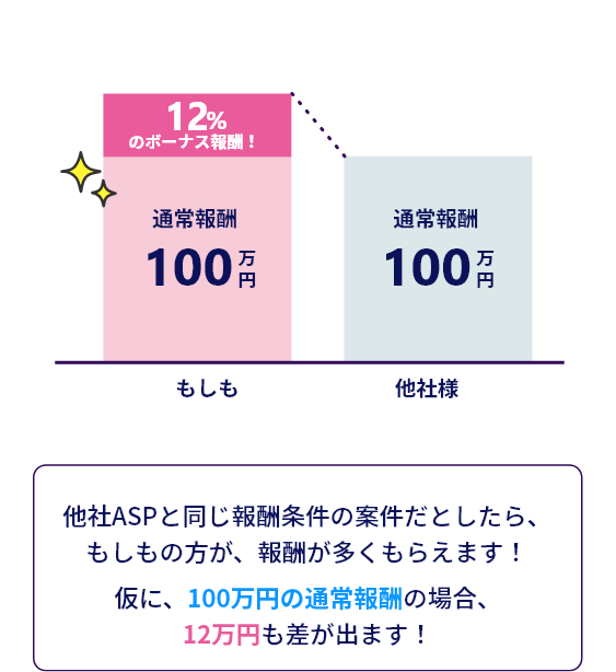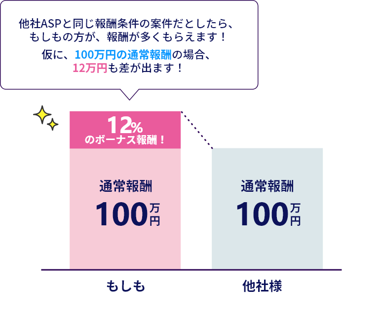 広告主からもらえる通常報酬に加え”もしも”から12%のボーナス報酬を提供する仕組みを採用しています。